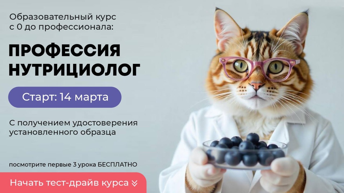 📄 Всё больше людей пытаются питаться с пользой для организма, и самое сложное для них — среди тонны мракобесных советов найти хоть что-то вменяемое. Все же видели этих «гуру», которые собирают миллионы подписчиков, рассказывая, что помидоры не уживаются с огурцами в одной тарелке, хлеб уничтожит человечество, а орехи помогают худеть? Так вот, врач-диетолог Александр Бурлаков объявляет набор на обучение ДОКАЗАТЕЛЬНОЙ НУТРИЦИОЛОГИИ, которое поможет: ✔️ врачам расширить спектр своих услуг: дополнительно зарабатывать на консультациях и составлении планов питания ✔️ большему количеству людей узнать, что на самом деле значит правильное питание Вводный модуль доступен в течение 7 дней со дня регистрации. Получите бесплатные уроки сейчас: t.me/profession_nutricionist_bot