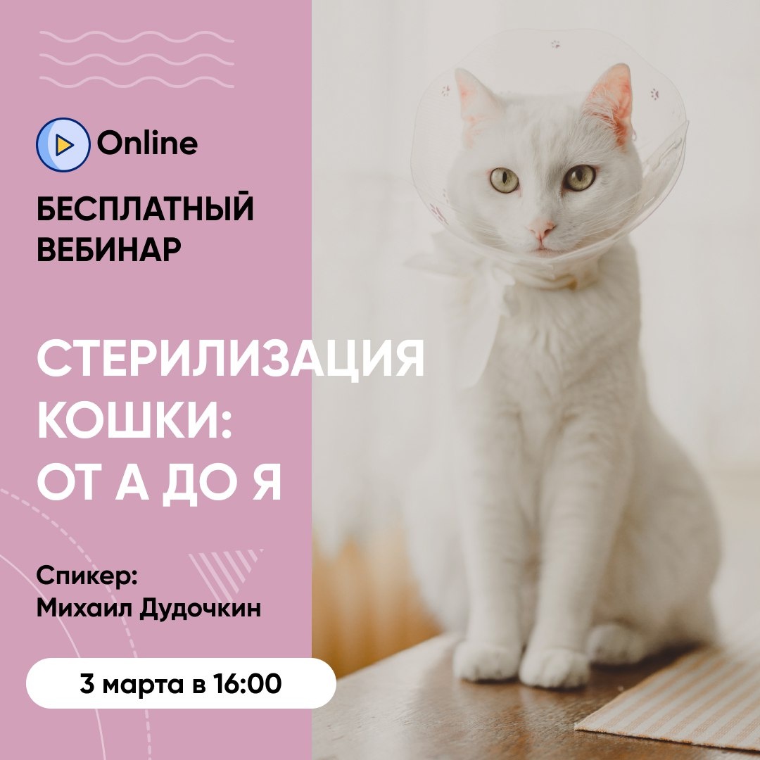консультацию специалиста в прямом эфире. На вебинаре обсудим: 🔸 в каком возрасте оперировать безопаснее всего; 🔸 пошаговую подготовку питомца к процедуре; 🔸 какие обследования нужны перед наркозом; 🔸 как ухаживать за кошкой после операции; 🔸 почему кто-то за, а кто-то против; 🔸 питание стерилизованной кошки. 🐾 3 марта 2026 16:00 (МСК) 🎙 Спикер: Дудочкин Михаил, ветеринарный врач-хирург высшей категории Vetcity Clinic. Если не получится быть онлайн — оставляйте вопрос в комментариях, мы передадим его спикеру, а ответы сможете услышать в записи. 🔔 Регистрация: https://clck.ru/3SA99f