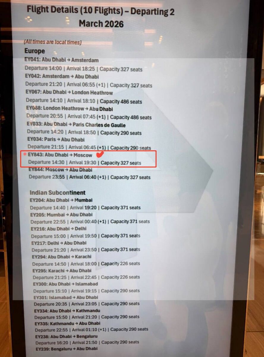 В аэропорту Абу-Даби возобновили регистрацию на ряд рейсов, включая направления в Москву, сообщают СМИ.