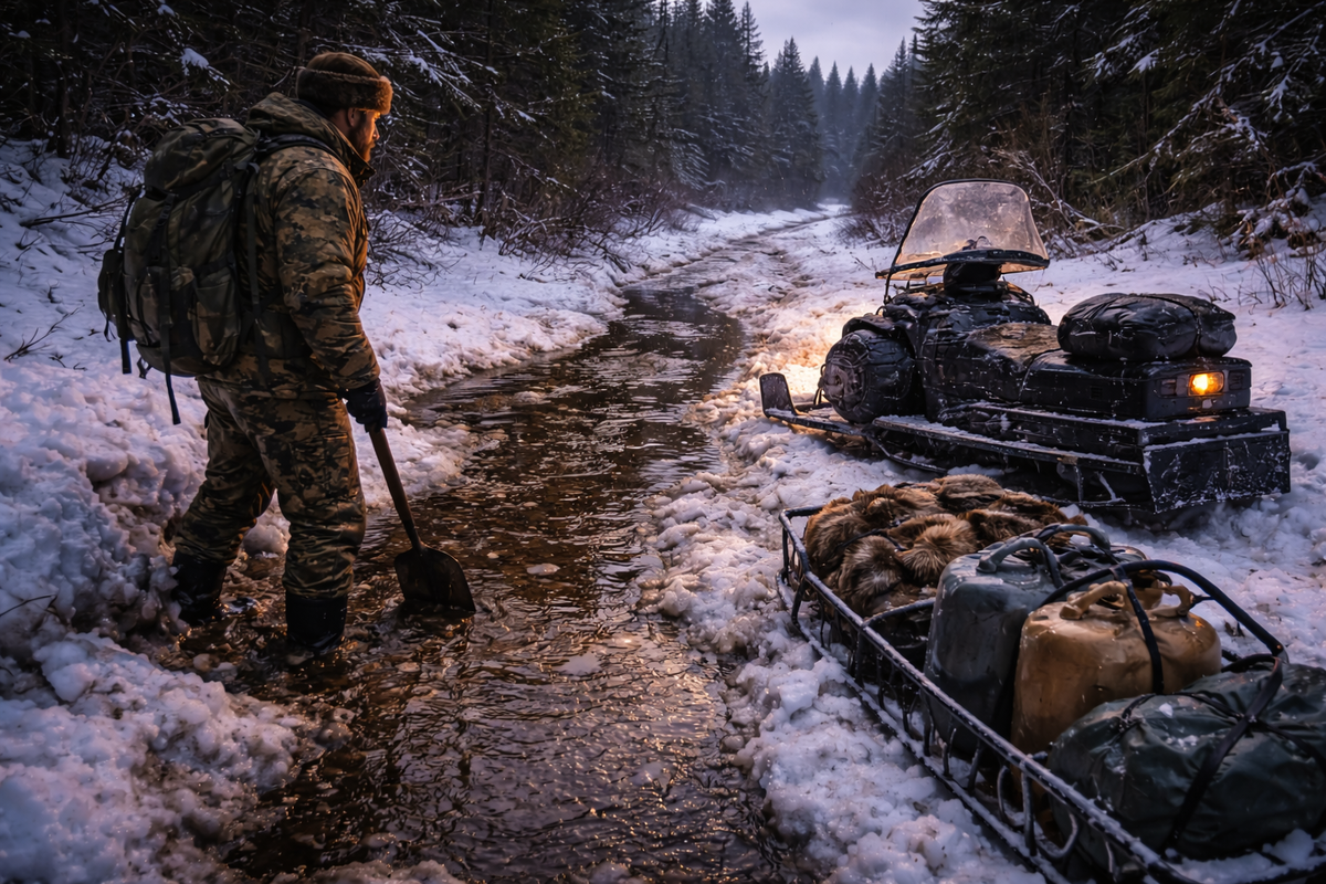 Вы когда-нибудь видели, как дорога исчезает? Не метафорически — по-настоящему. Когда ещё вчера по ней шли гружёные «Бураны», а сегодня под настом хлюпает вода, и каждый метр может стать последним. Зимник — это не просто путь. Это тонкая нитка, которая связывает тайгу с остальным миром. И если она рвётся раньше срока, человек остаётся один на один с тем, что успел завезти.