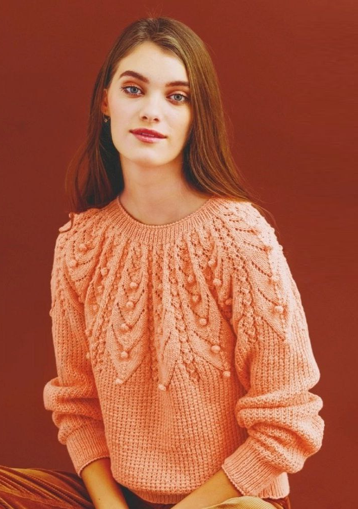 Джемпер спицами сверху круглой кокеткой + расчеты на 42-70 размеры