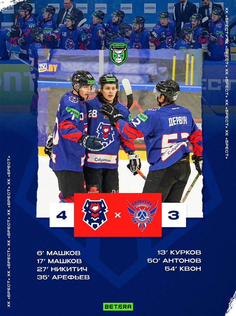 Поединок против российского «Славутича» закончился победой брестчан – 4:3. 👊 Владимир Машков оформил дубль в ворота бывшей команды, став лучшим игроком матча. 👏 Уроженец Березы Артем Никитич забросил 20-й гол в сезоне! Все средства, собранные с продажи билетов, пошли на помощь Даниилу Осыко. 🙏 Помочь Даниилу можно, пополнив баланс МТС +375 (33) 991-01-15. Следующий домашний матч «Бреста» состоится 6 марта против «Гомеля»!