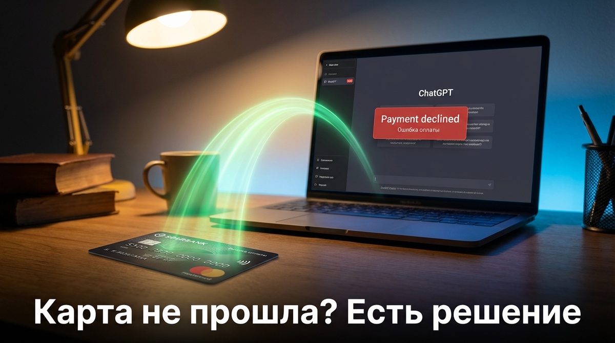 GPT-5.2 пишет код, анализирует документы на сотни страниц, генерирует видео и ведёт исследования автономно. Вы хотите всё это попробовать, заходите на страницу подписки, вводите данные карты Сбера — и получаете холодное «Payment declined». Знакомо?