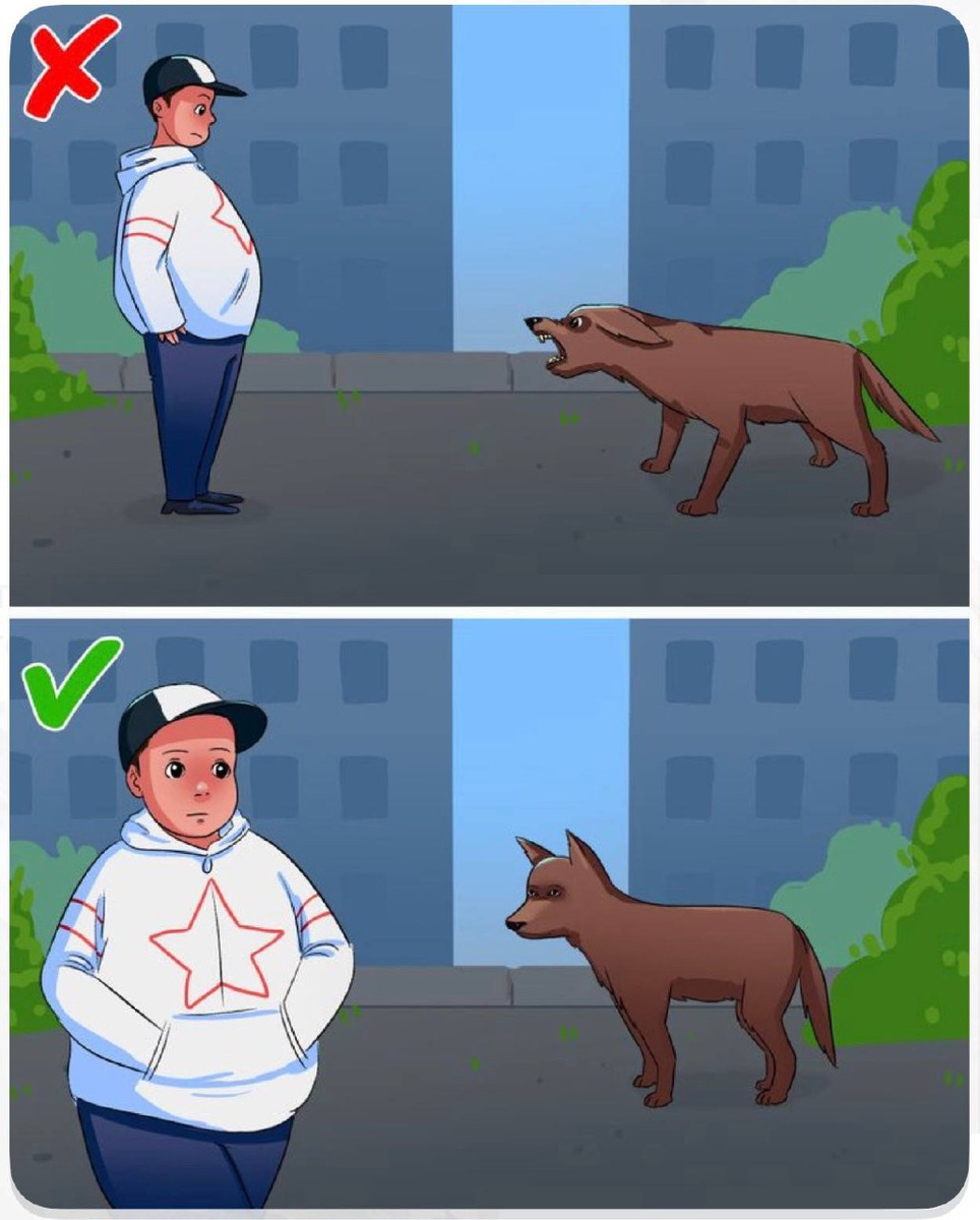 Правила поведения. Это очень важный вопрос, потому что поведение подростка (из-за его возраста и физических данных) может как спровоцировать собаку, так и предотвратить нападение. Бездомные собаки обычно не охотятся на людей, но они могут нападать, если чувствуют угрозу своей территории, пище или потомству. ПРОЧТИТЕ и научите ребенка 🙏 возможно когда-то это поможет вам, или вашему ребенку. Вот четкая инструкция, как минимизировать риск конфликта, разбитая на этапы: До, Во время и В критический момент. 1. До встречи: Профилактика и подготовка Самое опасное — это неожиданная встреча лицом к лицу. Подростку нужно усвоить правила сканирования местности. · Зрительный контакт и оценка: Научите ребенка не смотреть на собаку в упор (она воспринимает это как вызов), но держать ее в поле зрения боковым зрением. Важно оценить позу: если собака рычит, шерсть на загривке встала дыбом, хвост напряжен и поднят — она готовится атаковать. · Обход территории: Лучший способ избежать нападения — н