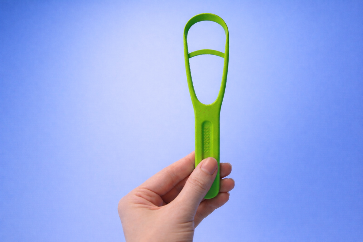 О языке вспоминают редко. Чистим зубы, пользуемся нитью, ходим на профгигиену — но игнорируем поверхность, на которой скапливается значительная часть бактериального налёта. При этом именно язык часто становится источником неприятного запаха и поддерживает воспаление в полости рта. Разберёмся, действительно ли нужно его чистить и как делать это безопасно. Поверхность языка неровная. На ней расположены сосочки разной формы, между которыми легко задерживаются: В этой среде формируется биоплёнка — такая же, как на зубах, но более рыхлая и объёмная. Если слюноотделение снижено (стресс, курение, приём лекарств), или нарушена гигиена, налёт уплотняется и становится заметным. Именно зона языка чаще всего отвечает за хронический галитоз. Нет. И это принципиально. Язык не нуждается в ежедневной чистке без показаний. Очищение оправдано, если: Чрезмерная чистка способна нарушить баланс микрофлоры и вызвать раздражение. Оптимальный инструмент — мягкий скребок анатомической формы. Он должен: Выбор з