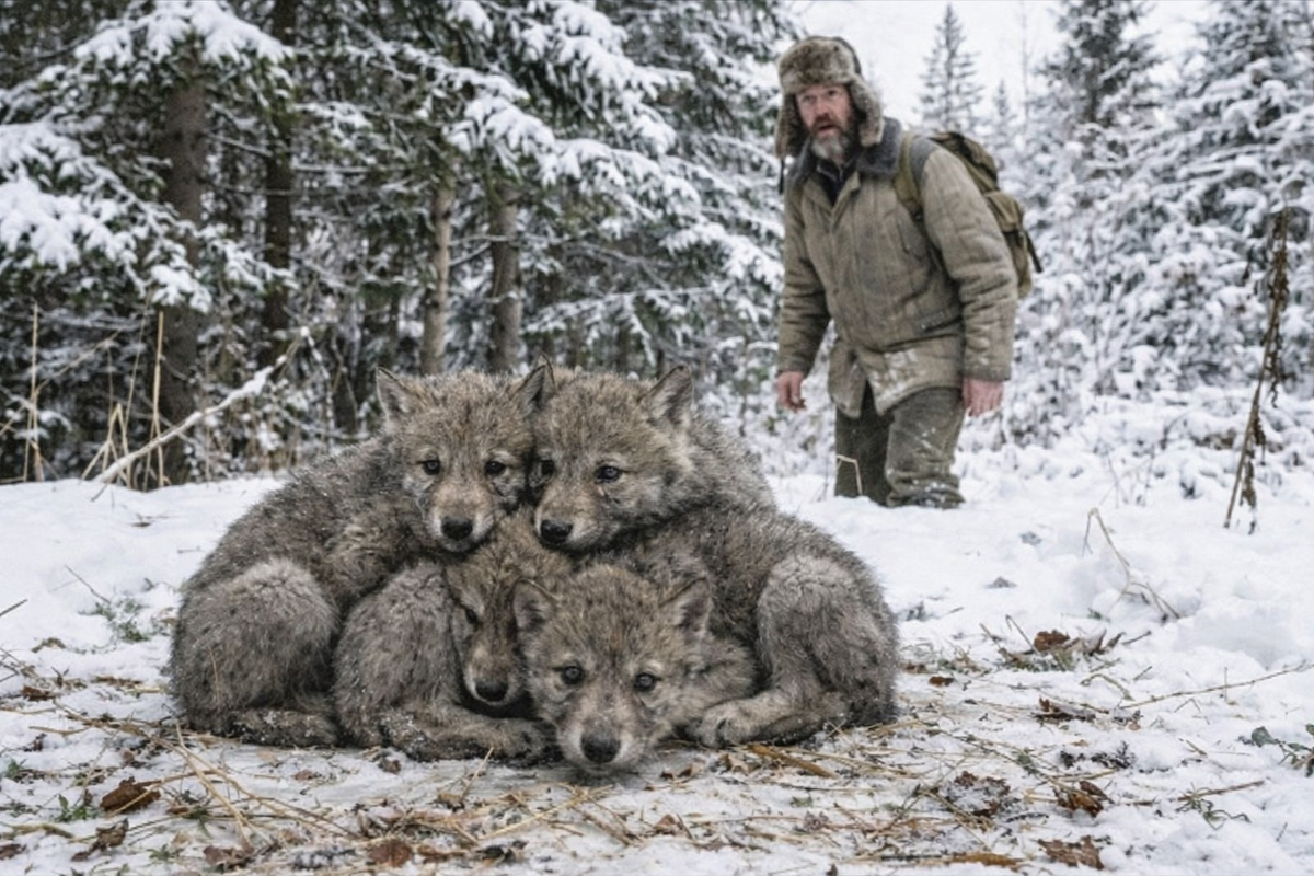 Егор Матвеевич спустился в овраг, ведомый звуком, похожим на плач ребенка. Картина, открывшаяся ему, была суровой: огромная волчица лежала на снегу. Осмотр показал — естественная смерть, тяжелые роды. Лесник уже собирался уходить, соблюдая закон невмешательства, когда из-под остывающего тела раздался писк.
