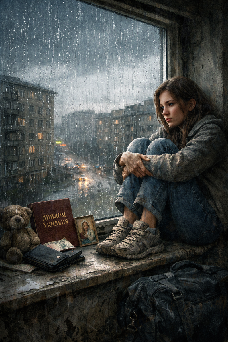 Дождь барабанил по карнизу уже третьи сутки. Не просто моросил, а лупил с остервенением, словно пытался пробить крышу старой хрущевки насквозь. Вера сидела на подоконнике, прижимая колени к груди, и смотрела, как по стеклу бегут мутные потоки. За окном был ее родной город — пыльный, сонный, безнадежный.