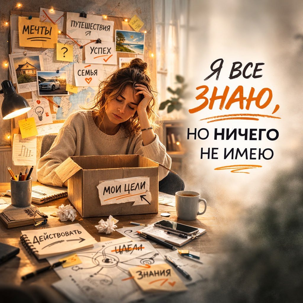 Когда всё уже понятно, прочитано и разложено по полочкам, а жизнь всё равно не двигается. Фраза «я всё знаю, но ничего не делаю» - почти всегда про это.Потому что если бы вы действительно всё знали, у вас бы не возникал этот вопрос. Знание, которое не превращается в действие, - это не знание. Это набор обрывков, чужих ожиданий и недосказанных «надо». Мы часто путаем понимание с ясностью.