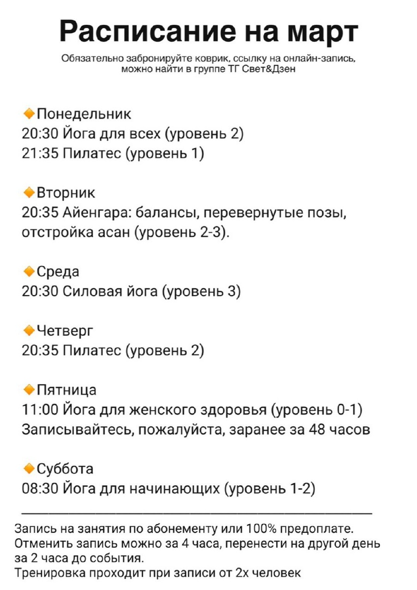Расписание на март открыто.