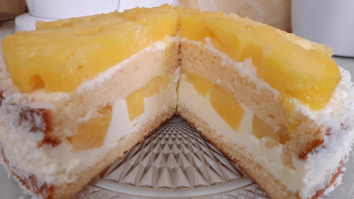 НЕЖНЫЙ и СОЧНЫЙ БИСКВИТ с КРЕМОМ ЗАВАРНЫМ! Торт СУПЕР ПРОСТОЙ и ОЧЕНЬ ВКУСНЫЙ! ГОТОВЬТЕ ВМЕСТЕ со МНОЙ, НАСЛАЖДАЯСЬ ПРОЦЕССОМ ПРИГОТОВЛЕНИЯ и ВКУСОМ ТОРТИКА Яйца - 3 шт Сахар - 100 г Мука - 100 г Молоко - 30 г Масло растительное - 30 г Разрыхлитель - 1 чайная Ванилин Соль Для формы размером 20-24 см. КРЕМ: Молоко - 300 мл Сахар - 100 г Крахмал - 2 столовые ложки Ванилин Масло сливочное - 150 г Ананасы консервированные - 1-2 банки Марина Еникеева