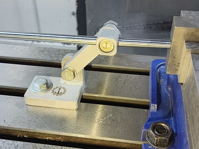 Добрейшего денёчка, уважаемые. Бывает иногда момент, когда сапожник решает резко запилить себе сапоги, а то чо они. Ну нельзя же и впрямь только другим всё делать, а себе нет. Короче, запилил вот такое вот: Ага. Начинается с фрезерка. Потому, что почему бы и нет? Поскольку мощнейше осваиваю свежеприобретённый фрезер, то и такие штуки, как расточки тоже решил делать на нём. Тут, правда случилось страшное. Маленько проебоглазил, отрезая деталю на токарнике, ну и случилась печаль. Ладно, ну не переделывать же? Токарник тоже задействован, есличо. Всё, что плоское - отшлифовал (для плоскопараллельности) и отпесочил (для прикольного матового вида), а всё, что неплоское - нет. Осталось собрать. Ну и, собсна, вот. Вот так оно и работает. Крепится жёстко на столе станка, упирается в первую заготовку, заготовка обкатывается и зануляется. Производится обработка, после чего, в этот же упор упирается следующая заготовка. И её уже не надо занулять. Короче, дольше объяснять, чем делать. Ну и не терпи