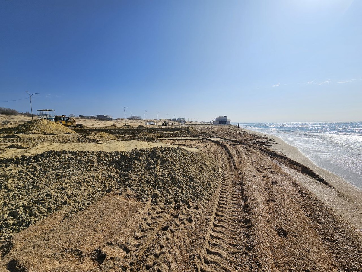 В Витязево стартовали работы по обновлению песчаного покрытия на экспериментальном участке длиной около километра. Работы ведёт арендатор пляжа с 25 февраля. По завершении эксперимента будет принято решение о масштабировании отсыпки на другие пляжные территории Анапы. По данным краевого Оперативного штаба, ранее с пляжей вывезли свыше 180 тыс. тонн песка, загрязнённого нефтепродуктами. Из-за этого уровень песчаного слоя заметно снизился, и теперь его восстанавливают новым материалом толщиной не менее полуметра. «Я лично побывал на месте отсыпки и на карьере. Песок выбран максимально родственный природному, который лежит на пляжах Анапы. Единственный минус — пока нет морской ракушки, но море со временем восполнит этот элемент. Работы экспериментальные, многое будем корректировать по ходу. Создадим постоянный мониторинг, чтобы вовремя вносить изменения в технологию, например добавлять водотоки для отвода воды», — рассказал старший научный сотрудник Института океанологии им. Ширшова РАН В