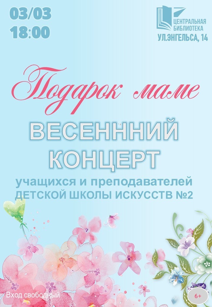 🎶3 марта в 18:00 в Центральной библиотеке в Обнинске пройдёт весенний концерт «Подарок маме