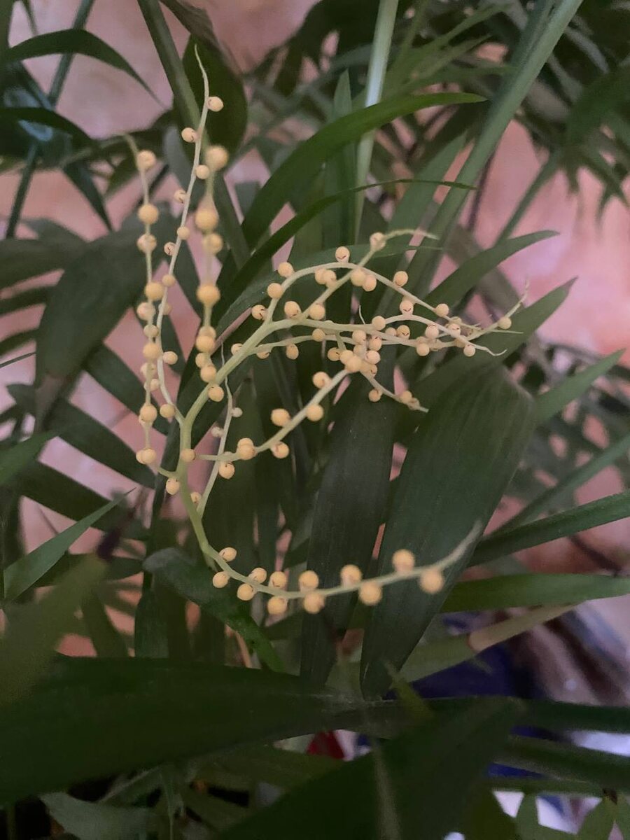 Хамедорея. Домашняя « мимоза». Пальма почувствовала приближение весны и решила зацвести 😊