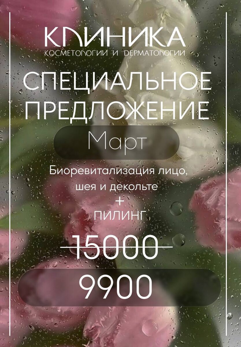 Специальное предложение на МАРТ: Биоревитализация лицо, шея и декольте и поверхностный пилинг