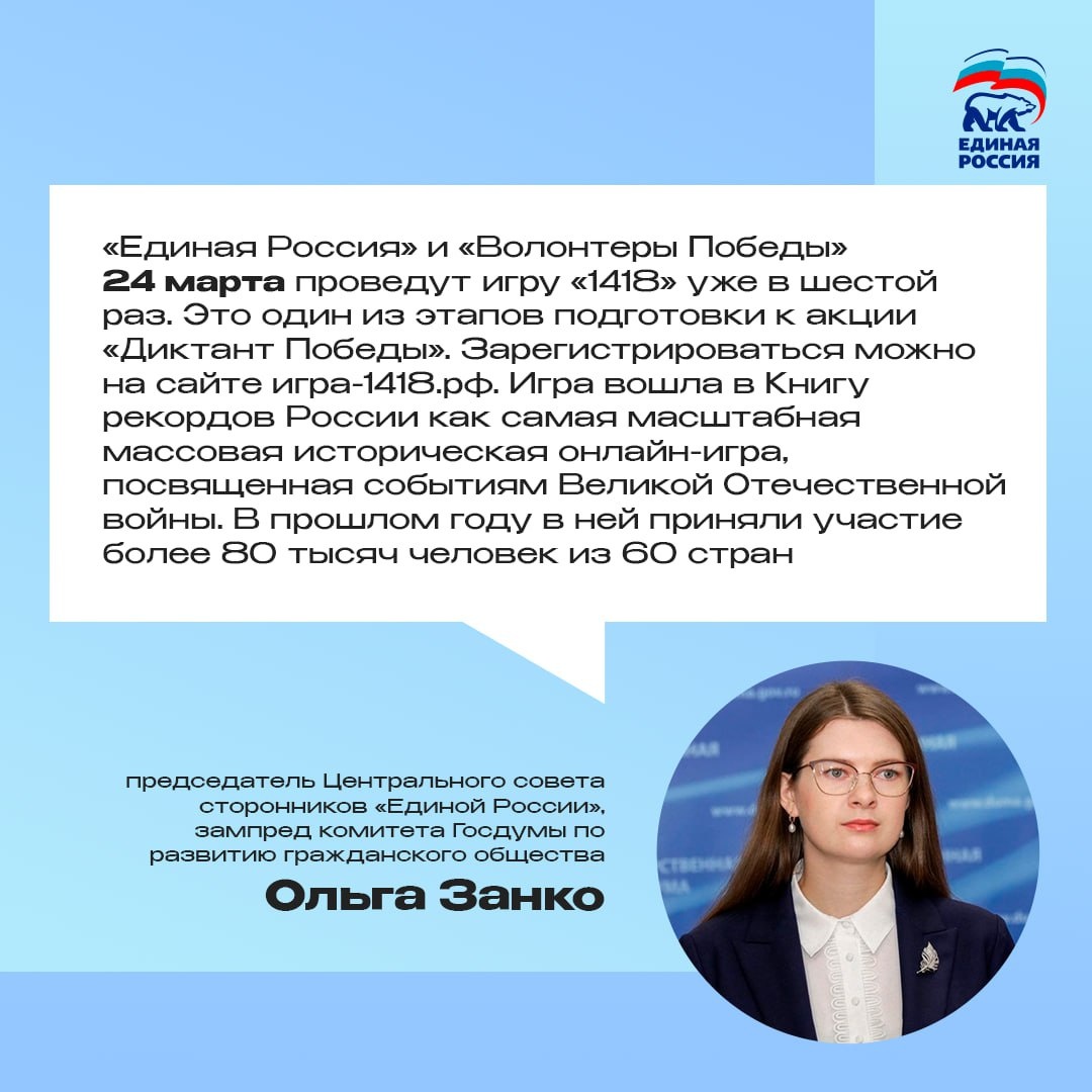 ✨ 🇷🇺 Единая Россия приглашает к участию в акции студентов вузов и ссузов, в том числе ведомственных учреждений Росатом, Российские железные дороги, Роскосмос, Русское географическое общество и других организаций. ✅ Игра включает два блока по 10 вопросов об истории Великой Отечественной и Второй мировой войн и Героях Советского Союза. Все задания основаны на архивных материалах и проходят историческую экспертизу. В 2026 году игра приурочена к Году единства народов России. Оставайтесь с нами #НашаПсковскаяобласть
