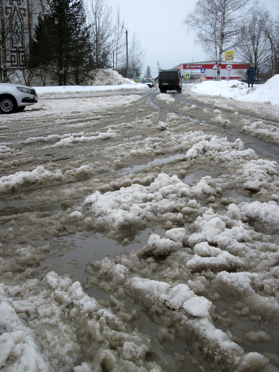 Снежная каша у остановки в Ефимьево