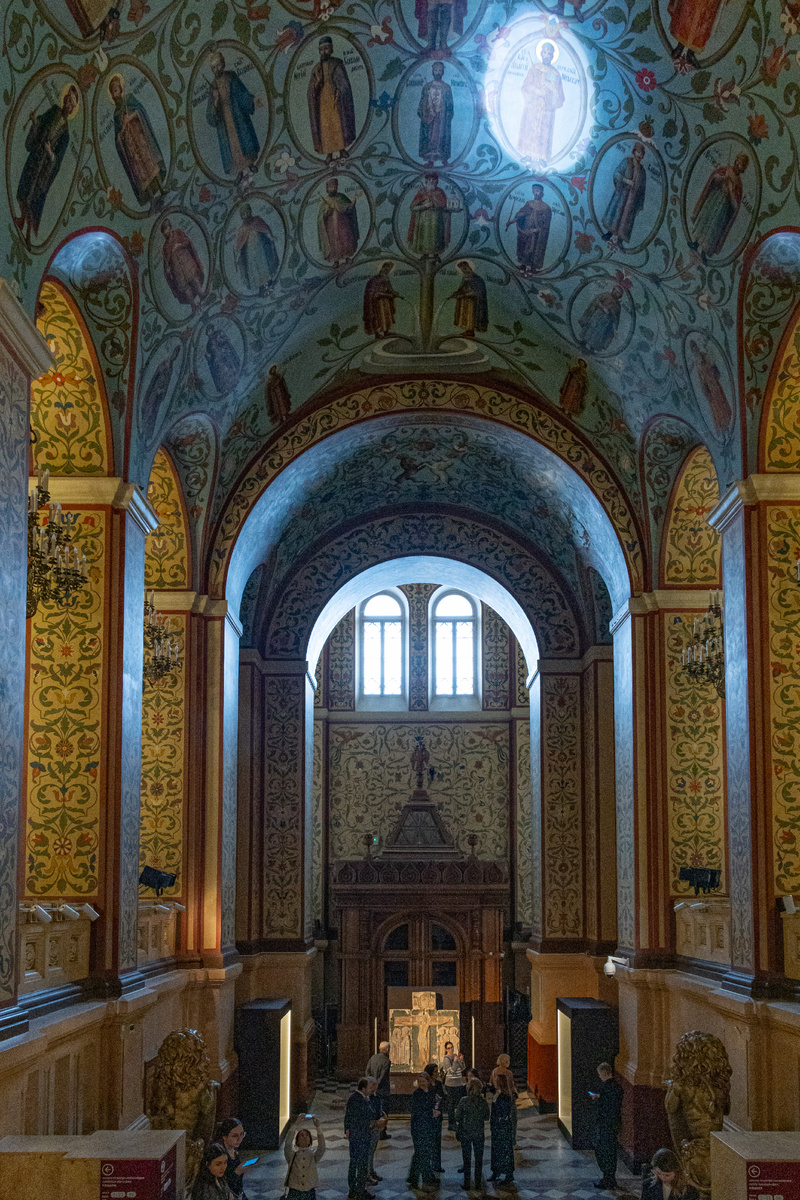 - Выставка проходит в одном из красивейших залов Исторического музея — Парадных сенях, своды которого украшены «Родословным древом Государей Российских» начиная от крестителя Руси святого равноапостольного князя Владимира и святой княгини Ольги.