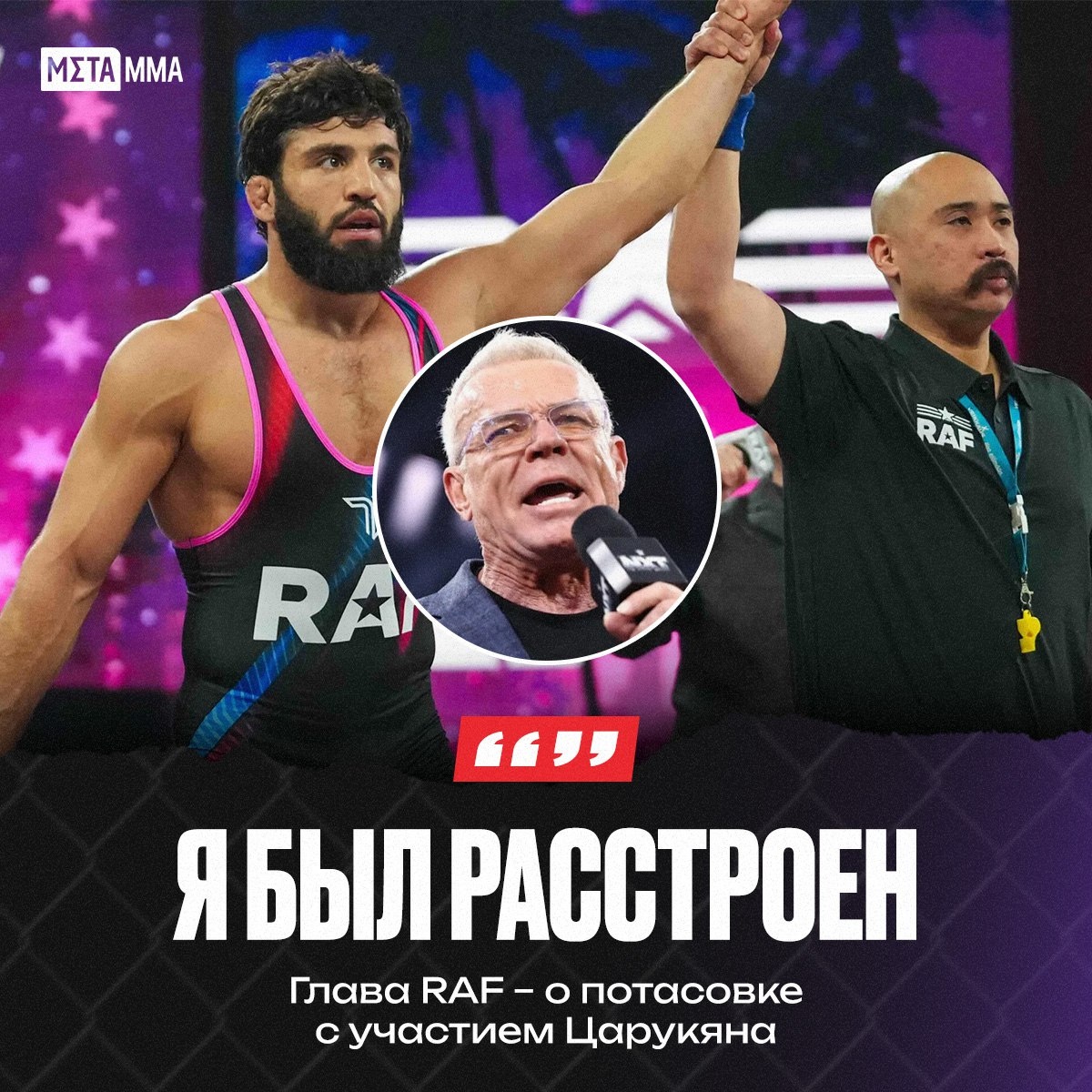 Глава промоушена RAF Эрик Бишов прокомментировал массовую потасовку после схватки Армана Царукяна и Джорджио Пулласа на турнире RAF 6. «Произошел неприятный инцидент. Пока мы не будем его комментировать, нам нужно пересмотреть запись и понять, что произошло. Поэтому не буду вдаваться в детали. В соцсетях меня уже обвинили в том, что я специально это устроил, чтобы все выглядело как в рестлинге. Но любой, кто меня знает или работал со мной, понимает, что я бы никогда не позволил этому зайти так далеко, потому что это длилось слишком долго. Шутки в сторону, я был расстроен», — сказал Бишов. ❓ Как считаете, будут ли последствия для Царукяна? 🔥 — Да, накажут 🤔 — Обойдется без санкций 👊 Подпишись на Meta MMA | Meta MMA в MAX | Наш канал в ВК