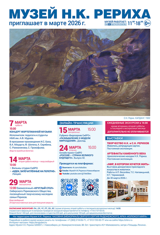 ЕЖЕДНЕВНЫЕ ЭКСКУРСИИ (кроме вторника, второй субботы и последнего воскресенья месяца) в 14:00. Дополнительно не оплачиваются. ☎ +7(383)218-06-71 ☎ +7 913 720-00-77 По вопросам проведения экскурсий: ☎ +7 913 727-00-05 «МОЧЬ ПОМОЧЬ — СЧАСТЬЕ». Страница меценатов ВЫСТАВКИ: