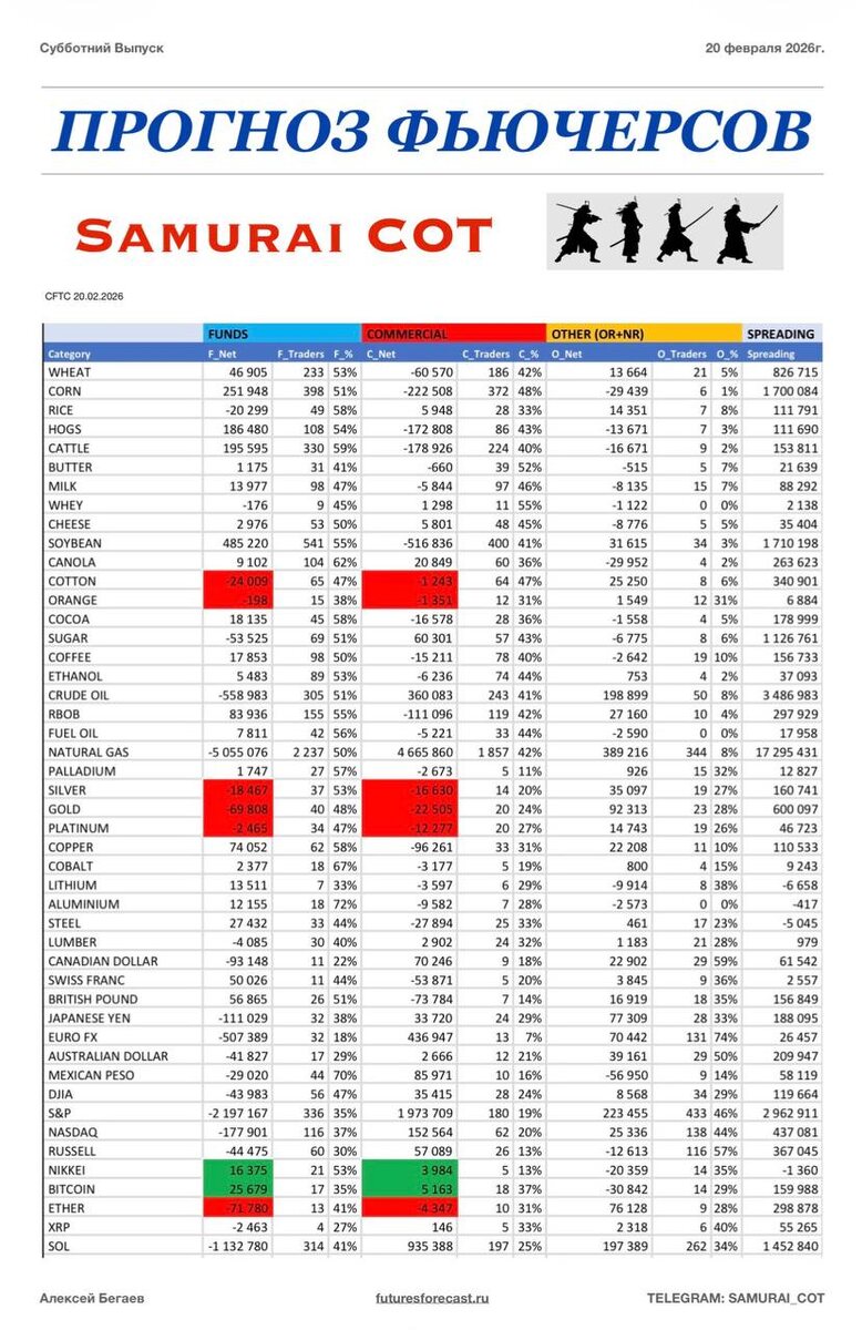 позициях трех категорий трейдеров, каждая их которых включает себя тех участников, которые в зависимости от рынка по праву могут называться истинным комерческими хэджерами и крупными спекулянтами. Отчет включает 47 рынков, стоимость подписки 999₽ / 30 дней. Вы получаете отчет каждую субботу до полудня - первыми. Оформить подписку вы можете в боте , для этого перейдите в канал и нажмите «Оформить подписку»=>»Подписки» https://t.me/samurai_cot #promo