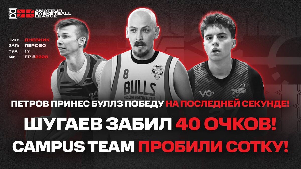 ) 😾Петров принес Буллз победу на последней секунде! 👩🍳Шугаев забил 40 очков! 😵Campus Team пробили сотку! 20:00 📱Ссылка 📱Наш сайт 📱Группа Вконтакте 📱MAX 1️⃣@ABL Moscow