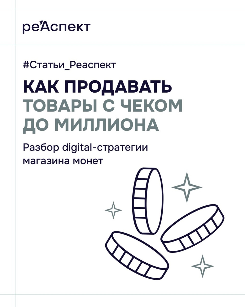 ? ↘️ Продвижение в узкой премиум-нише может быстро упереться в потолок: спрос ограничен, цикл сделки длится месяцами, — и стандартные перфоманс-инструменты просто перестают окупаться. ↗️ В новом материале разобрали стратегию для магазина коллекционных монет Numizmat.ru. Мы отказались от привычных шаблонов e-commerce и синтезировали классические маркетинговые модели 4P и 4 C, чтобы выстроить систему, где каналы усиливают друг друга. Подробный пошаговый разбор методологии и конкретных инструментов читайте в нашем блоге. #Статьи_Реаспект