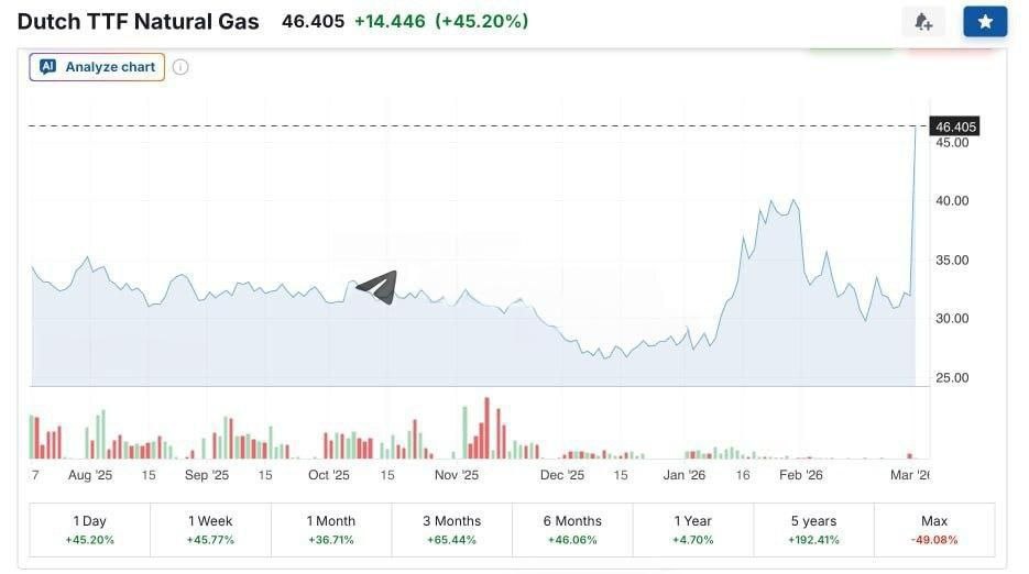Уже сейчас, после приостановки выработки СПГ в Катаре газ в Европе подорожал на 50%.