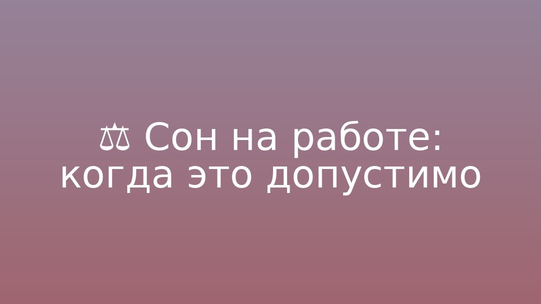 режимом труда (суточные дежурства, сменная работа) либо работодатель разрешил пребывание в нерабочее время без исполнения обязанностей. Ключевой критерий — наличие обязанности выполнять трудовые функции в момент нахождения на рабочем месте. Сон во время смены при исполнении обязанностей может квалифицироваться как ненадлежащее исполнение с дисциплинарной ответственностью вплоть до увольнения по ТК РФ; особенно недопустим он на работах повышенной опасности. Сон в законный перерыв для отдыха и питания не является нарушением, если не мешает производственному процессу, не нарушает ПВТР и не создает угроз безопасности.