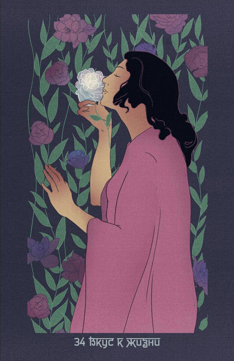 🕉 Клетка 34 ВКУС К ЖИЗНИ Ты можешь развиваться только в том, к чему тянется твоя Душа. Ты узнаешь это по тонкому аромату наслаждения, который окутает тебя с головы до ног и дотронется до сердца. Вспомни когда вкус какого-то очень любимого блюда окутывает твои рецепторы и погружает в приятные воспоминания. С этим вкусом у тебя связано много историй. Но что будет с глубиной твоего познания себя и Мира, когда ты начнёшь утончать свой Вкус к Жизни? Начнёшь фильтровать не только то, что ты ешь с наслаждением, а то, что читаешь, с кем общается, что носишь, чем интересуешься? Чем тоньше твой Вкус, тем интереснее и разнообразнее твоя Жизнь. А аппетит приходит во время еды.
