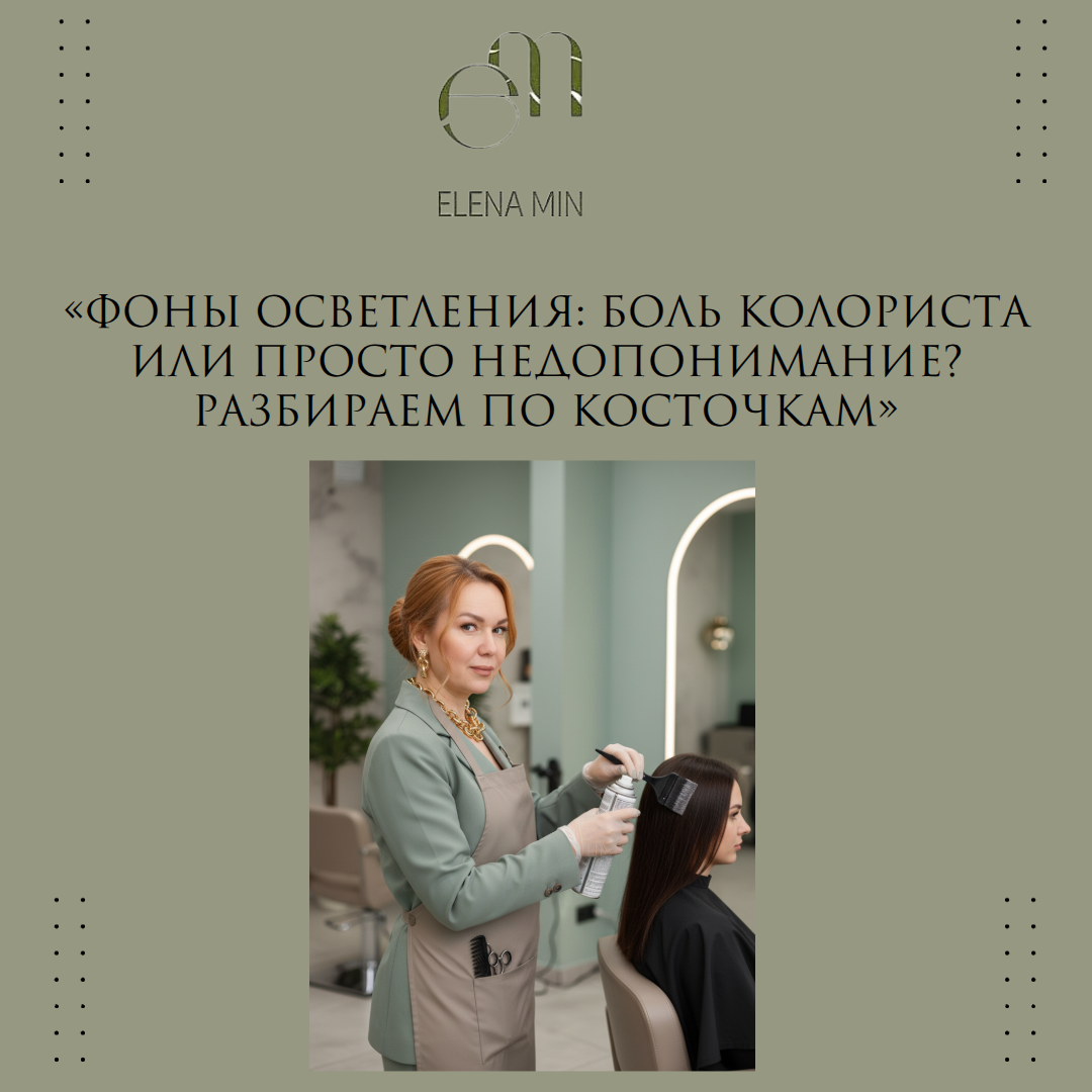 «Фоны осветления: боль колориста или просто недопонимание? Разбираем по косточкам» «Девочки, сегодня будет очень честный пост. Без прикрас, без рекламных обещаний. Только то, что я на самом деле думаю о фонах осветления. 1) Про таблицы, которые нам выдают Вам давали табличку с градацией фонов? Где написано: уровень 7 — оранжевый, нейтрализуем синим; уровень 9 — жёлтый, нейтрализуем фиолетовым? Так вот, держитесь за стул: это работает только в теории. На практике вы можете только догадываться, какой фон вылезет у конкретного клиента. Потому что у каждого своя генетика, своя история окрашиваний, своя пористость. Эти таблицы — как карта без масштаба. Направление показывают, но точный маршрут вы должны прокладывать сами. 2) Фон — это не враг. Это часть вашего цвета! Да, вы не ослышались. Если нет этого "долбанного" жёлтого, оранжевого или красного — то и волоса нет. Потому что это и есть естественный пигмент. Ваша задача как колориста — не убить фон, а использовать его для создания нужного