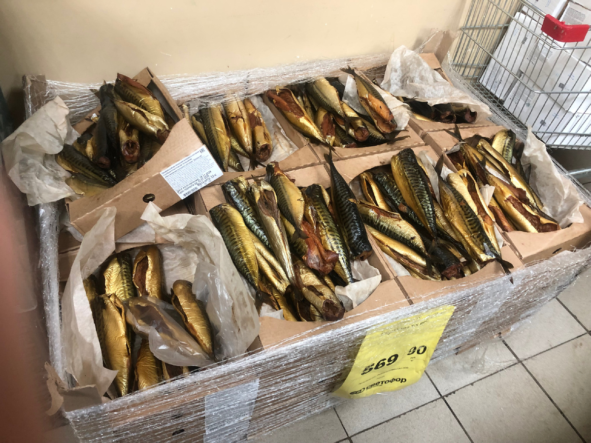 Сегодня в холодильнике увидела копченую скумбрию без головы. Аромат стоял великолепный. Не удержалась - купила. Оказалась очень даже вкусная и свежая. Цена за кг 569 рублей.
