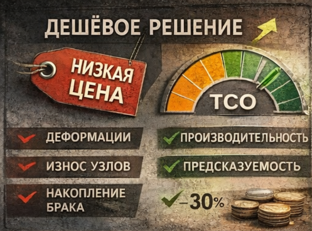 В промышленности часто выбирают по цене. Но опыт показывает: минимальная цена редко означает минимальные затраты. Разберёмся, почему дешёвое решение и экономически эффективное — это разные категории. Цена фиксируется в момент сделки.