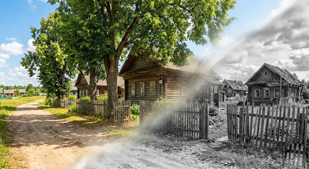 Ранним утром деревня ещё спала. Туман лениво стелился по огородам, цеплялся за ветви старых яблонь, и только скрип калитки нарушил тишину. Кузьма вышел из избы, по привычке перекрестился на угол крыши и неторопливо прошёл через сад. Воздух был прохладный, влажный, пахнул травой и сырой землёй. У беседки он остановился, поднял два больших пластиковых ведра — лёгкие, пустые, они гулко стукнулись друг о друга. В доме закончилась вода, а колодец был недалеко — через дорогу, за старой липой. Дело привычное, утреннее. Просёлочная дорога тянулась тихая, пыльная. Ни души. Только где-то вдалеке крикнул петух. Кузьма дошёл до колодца, опустил ведро, послушал знакомый плеск, скрип воротка. Всё было обыденно, спокойно. — А вот когда я был большим, у меня были такие же ведра. Я в них тоже воду носил. Голос раздался совсем рядом. Кузьма вздрогнул и обернулся. Перед ним стоял маленький мальчик — лет пяти, не больше. Светлые вихры, рубашонка навыпуск, босые ноги в пыли. Он смотрел серьёзно, совсем не