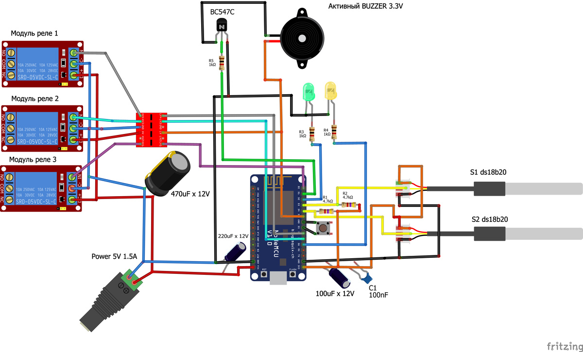 Проект построен на Blynk Legacy, несмотря на его неактуальность. Проект стал результатом исследований и взаимодействия с разными нейросетями (в основном платными) при написании отдельных частей кода. Но в итоге он получился, на мой взгляд, настолько хорошим и стабильным, что я решил им поделиться. Неактуальность старого Blynk, по сути, утверждение субъективное. Многие пользуются своими локальными серверами либо общедоступными неофициальными облачными решениями. Существуют общедоступные облачные серверы, в том числе Blynk.su. Устройство позволяет: Все фундаментальные настройки выполняются без перепрошивки через встроенный AP-портал (ESP-SETUP): Wi-Fi, Blynk, Email, режимы и политики работы. Оперативные установки и настройки производятся через команды терминала и кнопки в UI. Реализован мониторинг min/max и email-оповещения через Blynk Legacy, а также автономный локальный Alarm (LED/BUZZER/R3), который работает независимо от email. Поддерживается OFFLINE-режим: термостат и Alarm продолжа