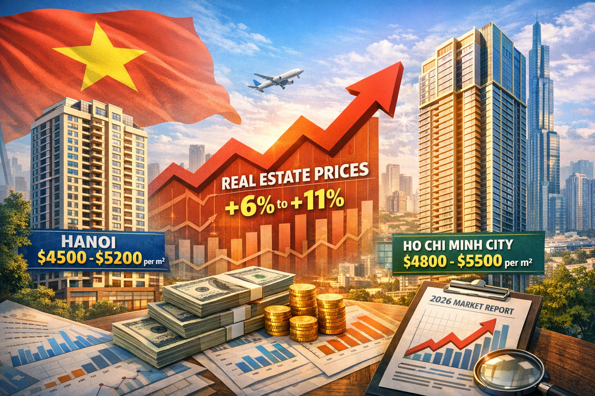 Во Вьетнаме по итогам 2025 года зафиксирован заметный рост цен на жилую недвижимость, который превысил уровень инфляции и обеспечил реальное подорожание жилья. Об этом свидетельствуют данные отраслевых исследований, опубликованные в январе и феврале 2026 года. В столице Ханой средняя цена новых квартир в центральных районах к началу 2026 года достигла $4500-5200 за квадратный метр. Год назад аналогичные объекты продавались в диапазоне $3900-4400. С учетом инфляции национальной валюты на уровне 4% реальный рост цен оценивается в 8-11% в зависимости от сегмента. В Хошимине средняя цена нового жилья в популярных городских районах выросла до $4800-5500 за «квадрат» против $4200-4700 годом ранее. Это означает реальный рост цен на 6-10%. Медленнее всего дорожает бюджетное жилье на вторичном рынке, быстрее всего – премиальное и элитное жилье на «первичке». В премиальном сегменте цены в обоих городах достигают $8000-12000 за квадратный метр, а элитные проекты продаются дороже $15000. Именно де