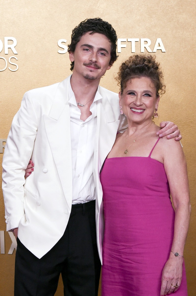 30-летний Тимоти Шаламе решил прийти с мамой на церемонию вручения премии Actor Awards 2026 (ранее известная как SAG Awards) в Лос-Анджелесе. Актер, который ранее посещал аналогичные мероприятия с возлюбленной, бизнесвумен и моделью Кайли Дженнер, «изменил» ей с главной женщиной в своей жизни. Тимоти остановился на лаконичном образе от Prada: белая рубашка и пиджак в сочетании с черными брюками и обувью. А вот его мама Николь Флендер, напротив, сделала ставку на цвет — она появилась в ярко-розовом платье, эффектно контрастировавшем со сдержанным выходом сына. Ранее Николь уже высказывалась о своей потенциальной невестке. В молодости мама Шаламе работала танцовщицей и актрисой. После ухода из кино Флендер стала агентом по элитной недвижимости. В 1980-х Николь вышла замуж за переводчика Марка Шаламе — француза из Нима. В 1992-м в семье родилась дочь Полин, а еще через три года на свет появился Тимоти. Брак родителей актера быстро распался, однако они до сих пор поддерживают теплые отноше