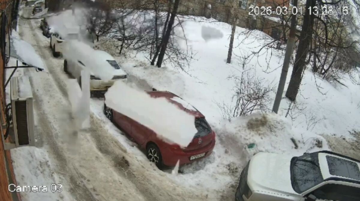 В Туле наледь с крыши повредила автомобиль на улице Советской, 17