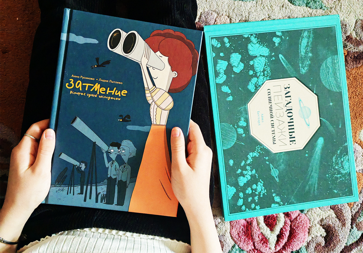 В издательстве «Поляндрия» вышла новая книга — комикс Анны Русиновой «Затмение. История одной экспедиции» с иллюстрациями Лидии Лытаевой, основанная на реальных событиях 1914 года. Все герои произведения реальны, а в основе произведения не только архивные документы, но и воспоминания одной их участниц. Книга адресована детям школьного возраста и создана в виде графического романа. Как очень многие книги «Поляндрии», она будет интересна и детям помладше, и их родителям. Самое интересное в этом издании — историческая достоверность Солнечного затмения 21 августа 1914 года. Астрономы самых разных стран предприняли попытки его наблюдения. Планировалось с его помощью проверить общую теорию относительности Альберта Эйнштейна. Не все планы получилось реализовать как по погодным условиям — во многих местах наблюдалась облачность, так и по политическим — началась Первая мировая война. Но у пяти отважных девушек, у которых не было средств даже на дорогу, это получилось! Зинаида Нунчева, Нина Суб