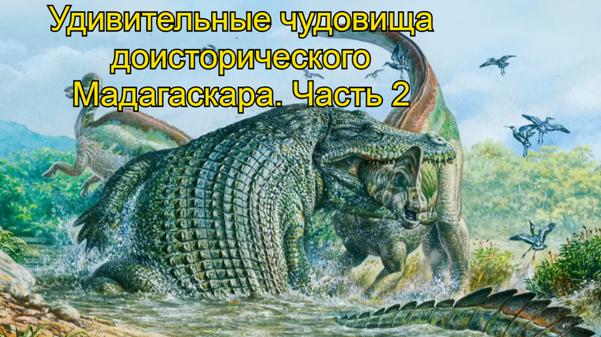 Это Разанандронгобе — гигантский крокодилоподобный зверь, чьё название уместно переводится как «предок гигантской ящерицы». И это был чудовищный высший хищник. И ещё, несмотря на сходство, технически это был не крокодил. Как и современные крокодилы, он принадлежал к вымершей группе крокодиломорфов, которые, к счастью для всего живого на Земле, уже не существуют.
