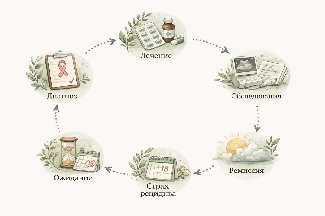 Болезнь разрушает прежнюю предсказуемость жизни. Будущее, которое казалось очевидным, вдруг становится неопределённым. И психике важно не столько принять, или признать происходящее, сколько заново найти опоры.