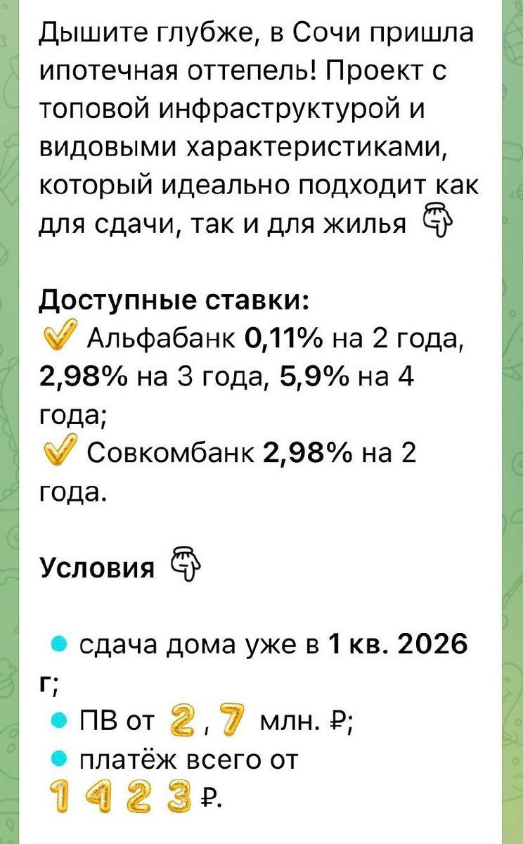 Своя квартира у моря- Сочи❤️Горячая пора для всех- ставка 5,9% на 4 года, дальше рефинансирование или полностью закрываем остаток🫶
