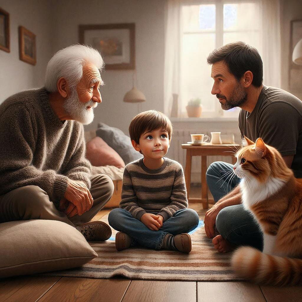 Домовой отцепил Стаса от кота и посадил себе на колени: