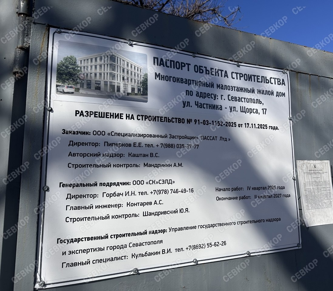 Возле рынка «Чайка» строят многоквартирный дом На улице Щорса, 17 началось активное строительство многоквартирного дома. Здесь планируется жилой дом на 12 квартир с планировками от однокомнатных до трехкомнатных. На первом этаже разместят коммерческие помещения с индивидуальными входами по всему периметру, на 2-4 этажах — жилые, в подвальном этаже — подземная парковка на 19 машиномест. Напомним, что год назад арбитражный суд Севастополя частично удовлетворил иск компании «Пассат ЛТД» к департаменту архитектуры и обязал выдать разрешение на строительство малоэтажного многоквартирного дома по адресу ул. Частника – ул. Щорса, 17. Земельный участок (кадастр 91:03:001011:33) выдали в 2000 году для малоэтажной застройки. В декабре 2022 года департамент отказал в разрешении, ссылаясь на несоответствие охране исторического поселения — позицию поддержало Севнаследие. «Пассат ЛТД» предоставил проект с положительным заключением экс-главы Севнаследия Михаила Рязанцева. Суд признал отказ незак