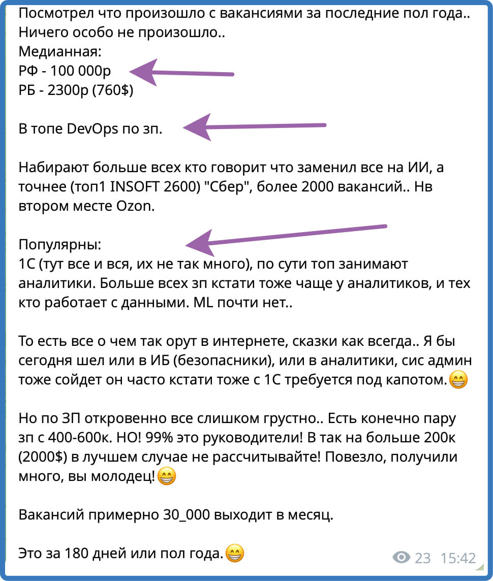 Это по рынку труда - мне прислали в личку, разрешили поделиться. Короче - 1С рулит. И Девопсы тоже. Но если по Девопсам у меня есть небольшие сомнения, то по 1С нет вообще.
