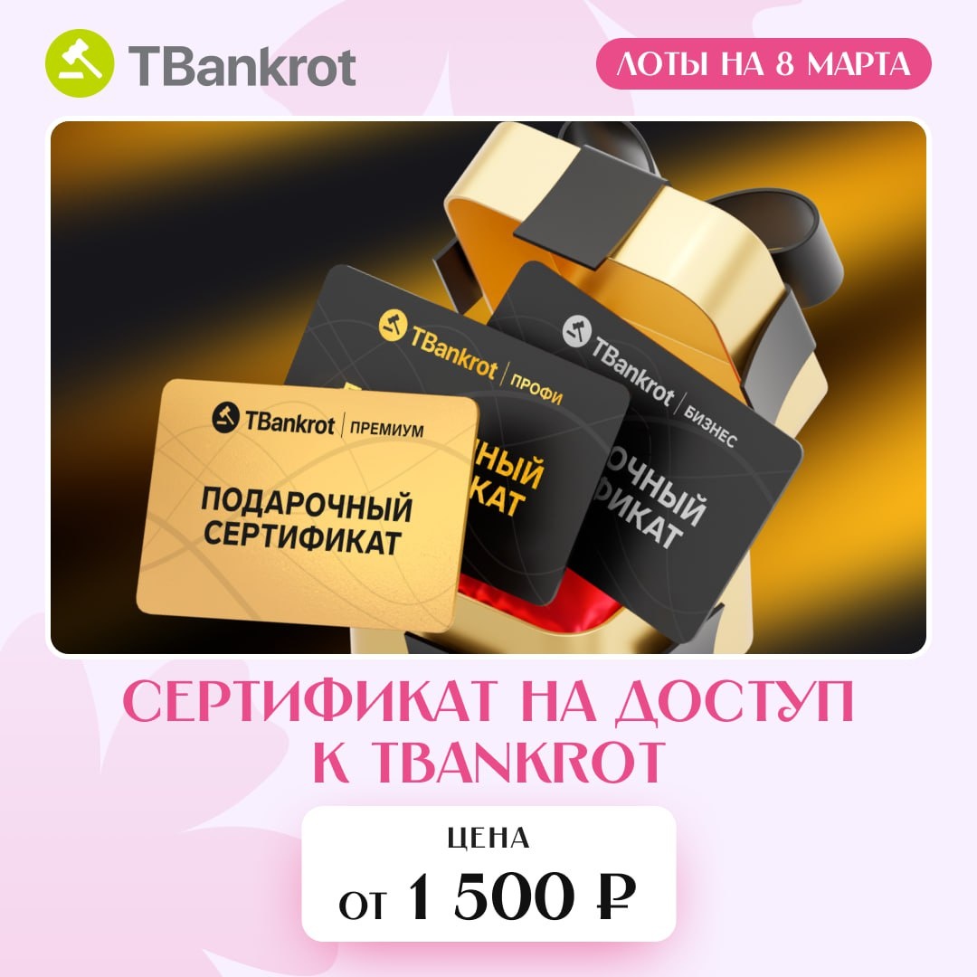 Подобрали 5 лотов, которые способны удивить даже ту, которая привыкла к самому лучшему. 🎁 Сертификат на доступ к TBankrot Подарок для той, кто предпочитает выбирать самостоятельно. С этим сертификатом она найдет и желанные украшения, и доходную недвижимость. Это инструмент с бесконечным потенциалом роста дохода. Цена: от 1 500 ₽ 👉 https://clck.ru/3SEV9P 🏙 Квартира 187 м² на Мосфильмовской Создана для тех, кто ценит масштаб. Главный бонус — панорамное окно на 32 этаже, через которое можно каждое утро проверять, на месте ли шпиль МГУ. Текущая цена: 127,9 млн ₽ 👉 https://clck.ru/3SEVBJ 📿 Ожерелье из золота 750 пробы и жемчуга Тот случай, когда подарок можно не только носить с удовольствием, но и считать надежной инвестицией. Начальная цена: 262 000 ₽ 👉 https://clck.ru/3SEVFn ☕️ Сервиз Faberge Если пить кофе из такой чашки, даже утро понедельника превратится в торжественный прием. Начальная цена: 159 000 ₽ 👉 https://clck.ru/3SEVHt 🔐 Сейф для хранения прибыли Реком