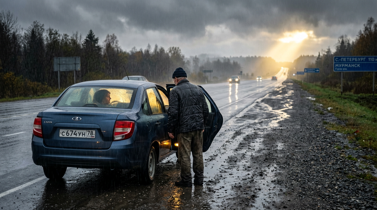 Но там, в зеркале заднего вида, стоял мокрый старик под ледяным дождём. И что-то внутри сказало: нельзя.