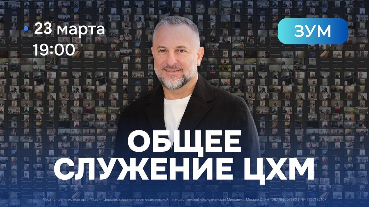 ! Епископ Эдуард Деремов приглашает вас на общее Богослужение на площадке Zoom (зум). 23 марта / 19:00 / Zoom (зум) Предстоящее послание будет значимым и вдохновляющим для каждого из нас. Подключайтесь сетями, домашними группами, семьями. Будьте в единстве! Будем рады видеть каждого из вас 🙏