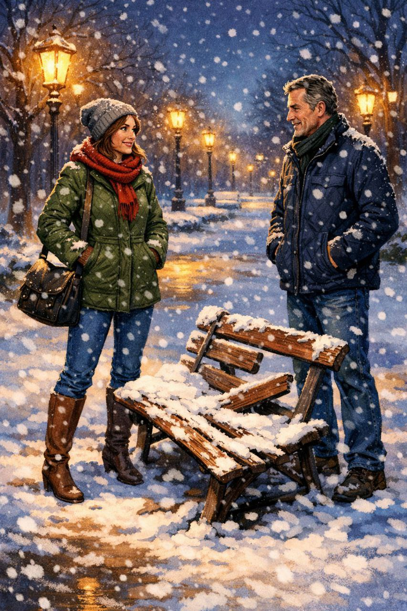 Они уже обошли сквер по кругу и снова вышли к той самой скамейке с погнутой спинкой. Снег засыпал её ровным слоем, и она стала похожа на что-то из зимней сказки — немного нереальное, немного волшебное.