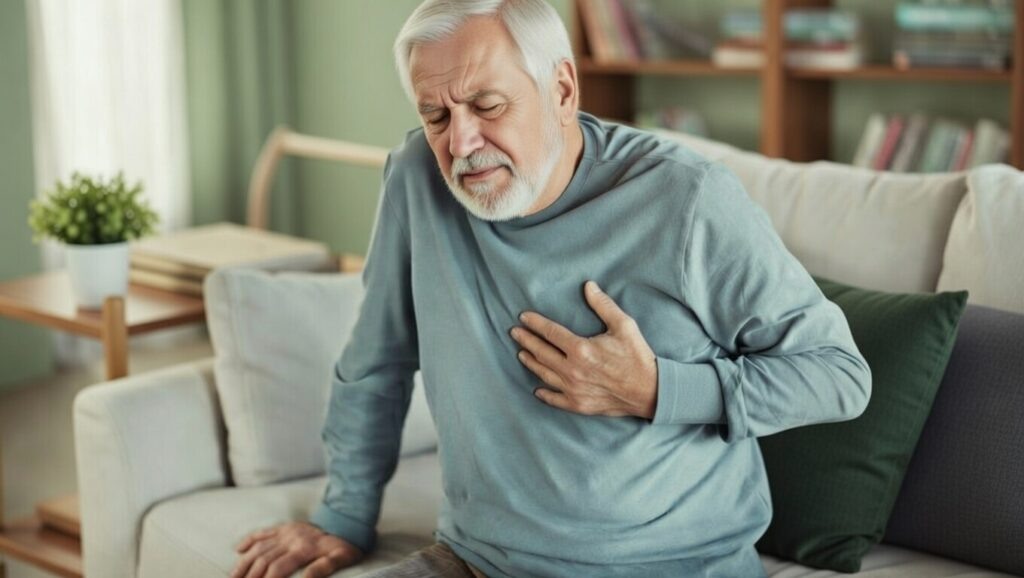 Если появляются сжимающие, давящие или колющие боли за грудиной, можно дать под язык препараты быстрого действия — например, нитроглицерин (по одной таблетке под язык с интервалом около 10 минут, если боль сохраняется). При этом не превышать рекомендуемую дозировку и учитывать индивидуальные противопоказания.